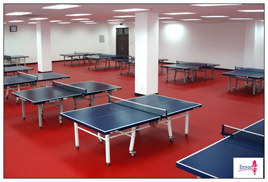中高檔乒乓球館場地建議選用選擇3.5mm/4.5mmEnyoo紅色荔枝紋08602或紅色網(wǎng)格紋08603運動地板。專業(yè)運動地板的性能,更高的性價比無疑是中高檔室內(nèi)乒乓球球館的最佳選擇。